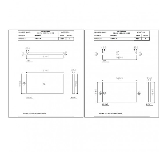 Cast Stone Shop Drawings with cut tickets & setting drawings