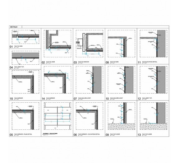 Floor and wall tile shop drawings for a luxury residences highrise